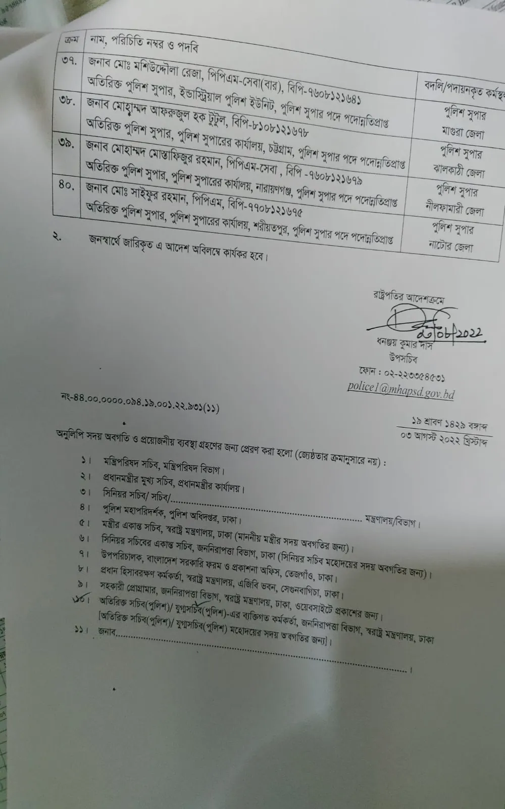 ঢাকা-চট্টগ্রামসহ ৪০ জেলায় নতুন পুলিশ সুপার নিয়োগ
