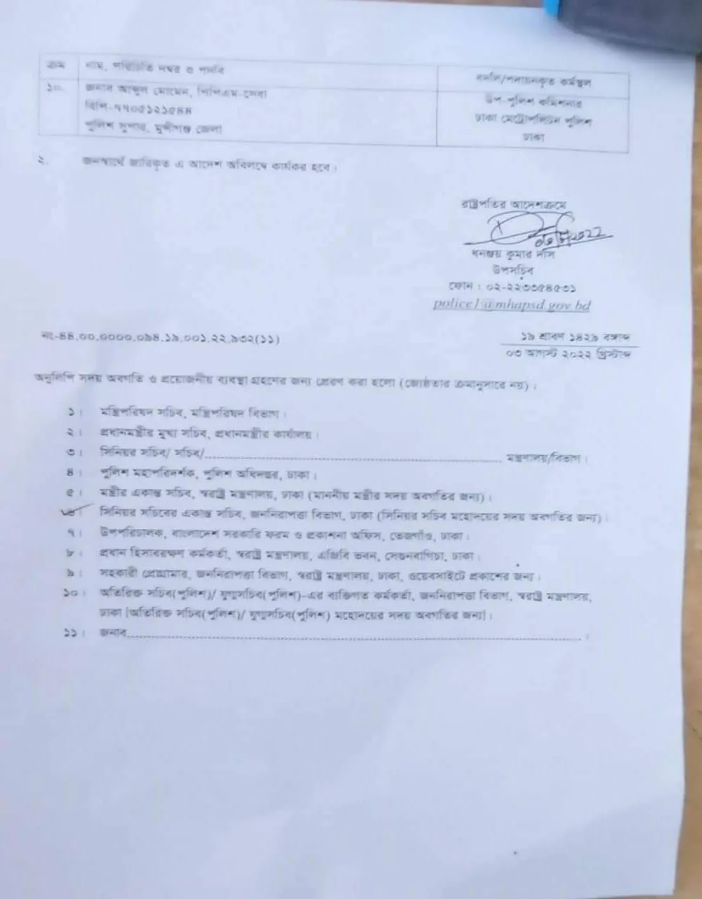 এদিকে এক আদেশে স্বরাষ্ট্র মন্ত্রণালয় জন নিরাপত্তা বিভাগ ১০ জেলার পুলিশ সুপারকে প্রত্যাহার করেছে। প্রসঙ্গত গতমাসে ২৫ জেলার পুলিশ সুপার অতিরিক্ত ডিআইজি পদে পদোন্নতি ও অন্যত্র পোস্টিং হয়। ২৫ জেলায় নতুন পুলিশ সুপার নিয়োগ সহ অন্যান্য জেলাগুলিতে রদবদল করা হয়।